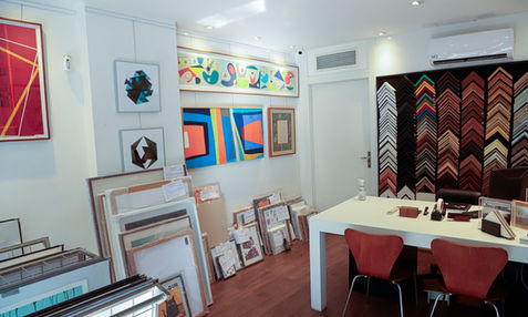 Em nossa oficina própria, o tempo corre em outro ritmo. Ali, profissionais dedicados unem tradição artesanal e precisão técnica para garantir que cada acabamento seja impecável. “Moldurar, para nós, é um gesto de respeito à arte."
